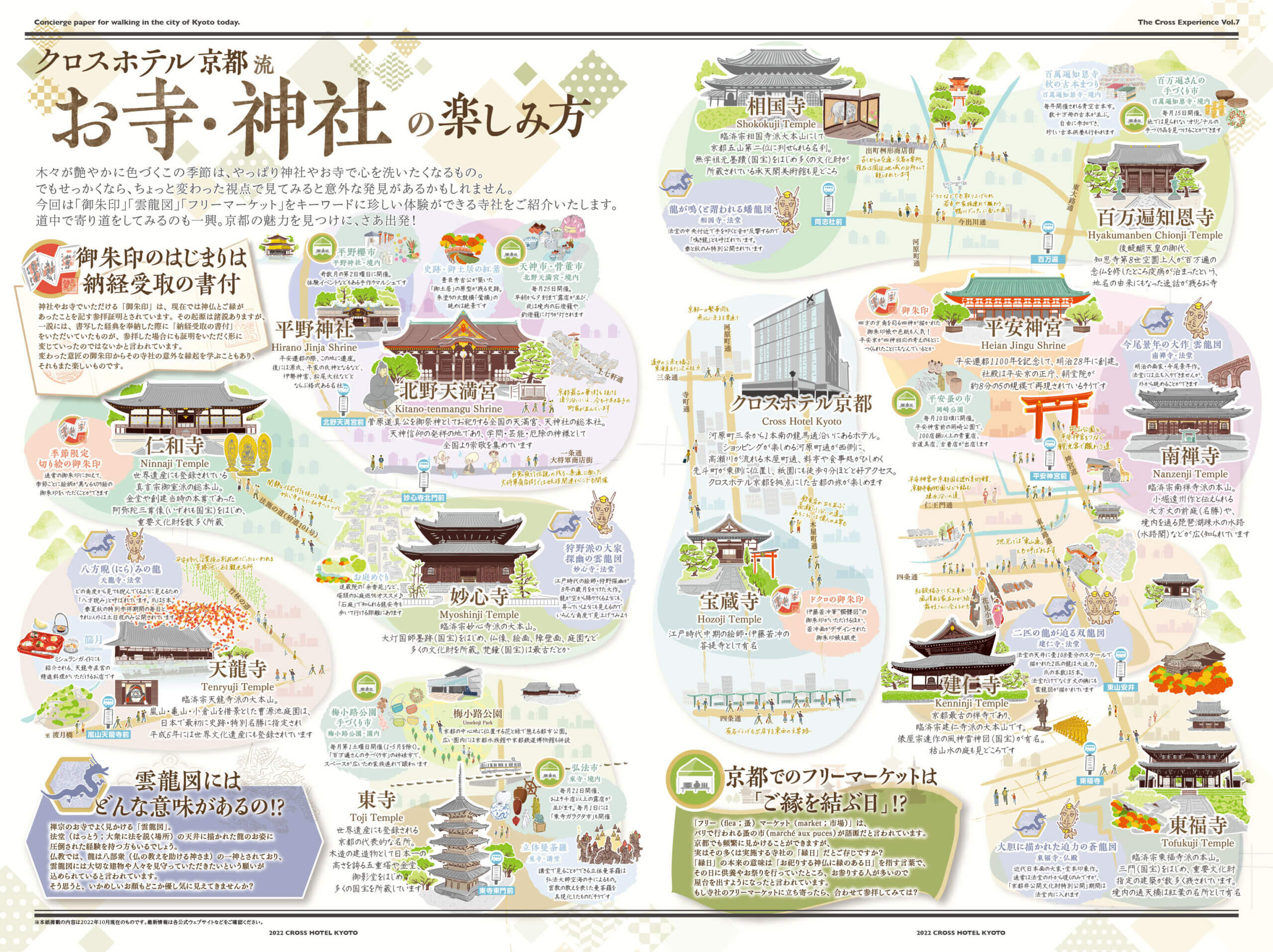 秋に艶やかな色合いに彩られるお寺や神社。せっかく行くなら、紅葉狩りだけじゃなくなにか「+α」したいもの。Vol.7では「御朱印」「雲龍図」「フリーマーケット」をキーワードにお寺・神社の楽しみ方を紹介しています。